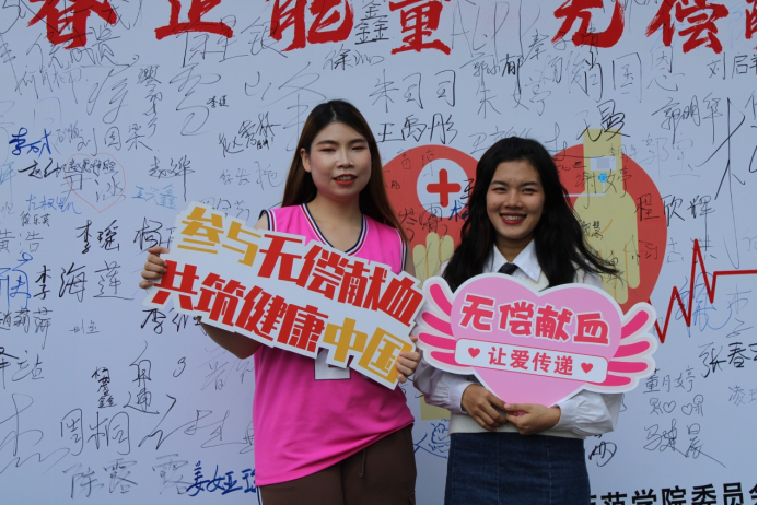 活动现场,在学生志愿者的引导下,同学们有序排队等候,依次进行个人信息填表、征询体检、初筛、信息登记和献血环节。活动主办方贴心为大家准备糖水、奶糖、小面包等,方便大家及时补充能量。献血过程中,志愿者们时刻关注献血同学的需求,并通过聊天的方式舒缓献血者的紧张情绪。献血之后,志愿者热心邀请献血者到签名墙前签名拍照,并发放相应的纪念品。