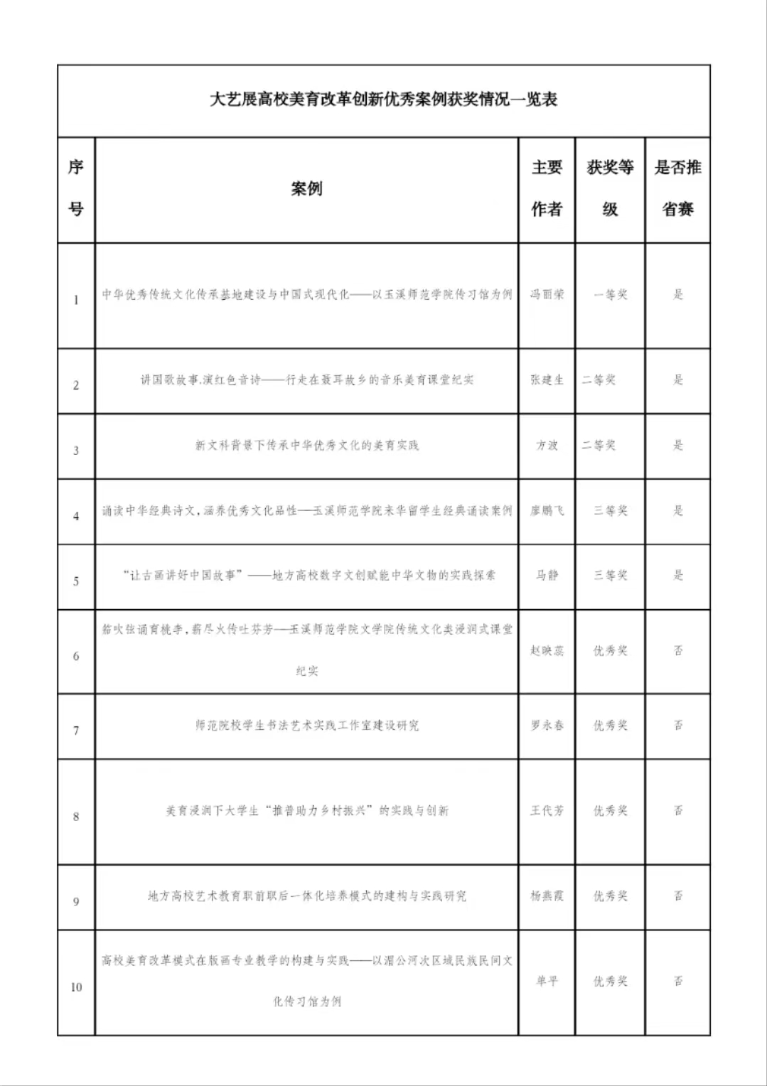 为深入学习贯彻习近平总书记关于教育的重要论述和全国教育大会精神,认真落实中办、国办《关于全面加强和改进新时代学校美育工作的意见》精神,坚持以美育人、以美化人、以美培元,提升学生审美与人文素养,学校于2023年4月-10月组织开展了云南省第七届大学生艺术展演活动玉溪师范学院校内选拔赛。围绕艺术表演类(含集体项目和个人项目)、学生艺术实践工作坊、艺术作品类(含学生艺术作品和高校校长书画摄影作品)和高校美育改革创新优秀案例四大类,共从全校征集到270件优秀艺术作品,共上报省教育厅艺术表演类作品9件、艺术作品类作品27件、艺术实践工作坊2件、美育改革创新优秀案例5件、高校校长书画摄影作品4件。