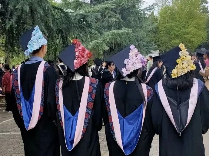 在今年夏天的毕业典礼上,也有不少学生在学位服外披上了云肩,在学位帽上簪上了团花,在生活的细节中,中华血脉悄然觉醒,文化自信扎根于心中。