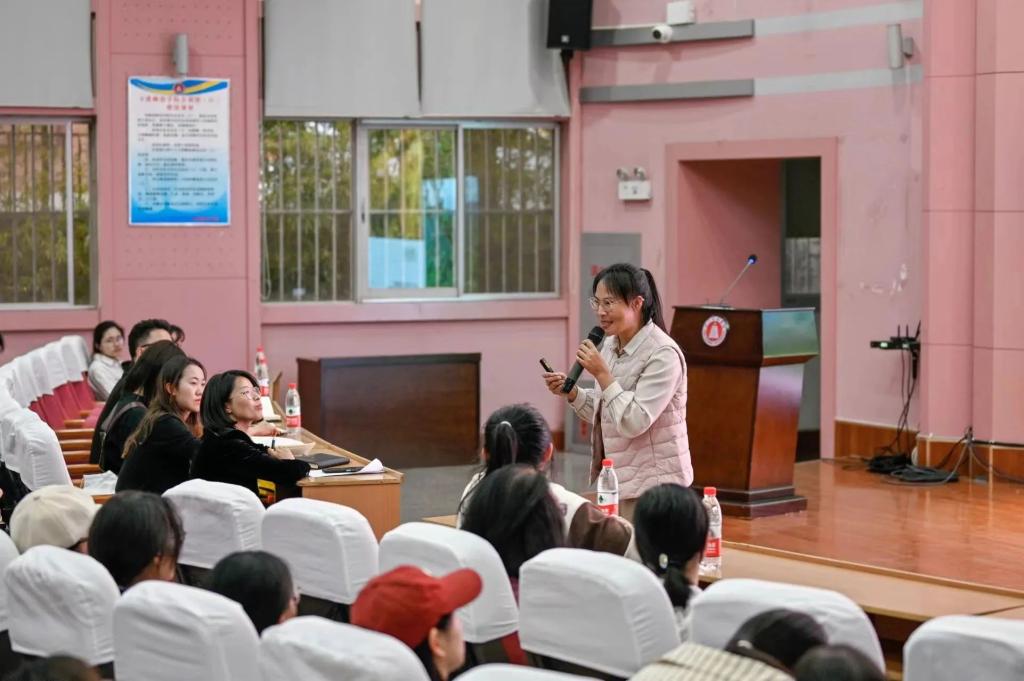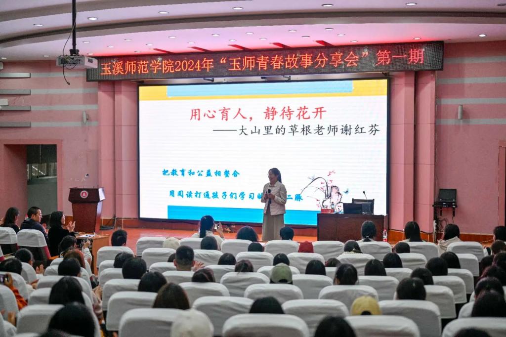 宾川县管岗完小教师、全国三八红旗手、全国“乡村阅读榜样”、“中国好人”(敬业奉献类)、“阅读·改变中国”年度点灯人、云南省优秀教师、云南省“科技兴乡贡献奖”、“云南好人”(敬业奉献类)、大理州优秀教师、“大理十大最美人物之最美教师”谢红芬,以“用心育人,静待花开”为题,与玉师青年们分享了她20年扎根山区教育,坚持“阅读铸魂”理念,用自己的坚守,奋力托举起乡村孩子人生梦想的故事。