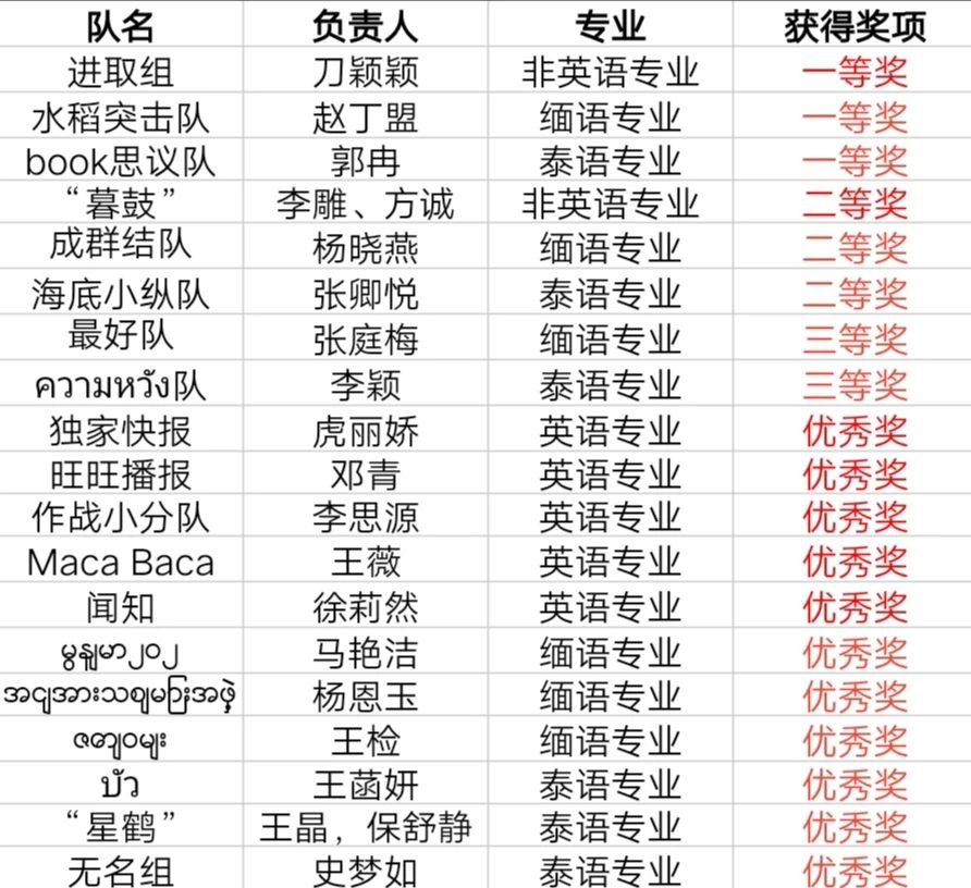 经过激烈的角逐,最终评选出了一等奖、二等奖和三等奖。获奖选手们纷纷表示,这次比赛不仅让他们收获了宝贵的经验和知识,更让他们认识到了自己的不足和需要努力的方向。他们将以此次比赛为契机,继续努力提升自己的外语水平和综合素质。