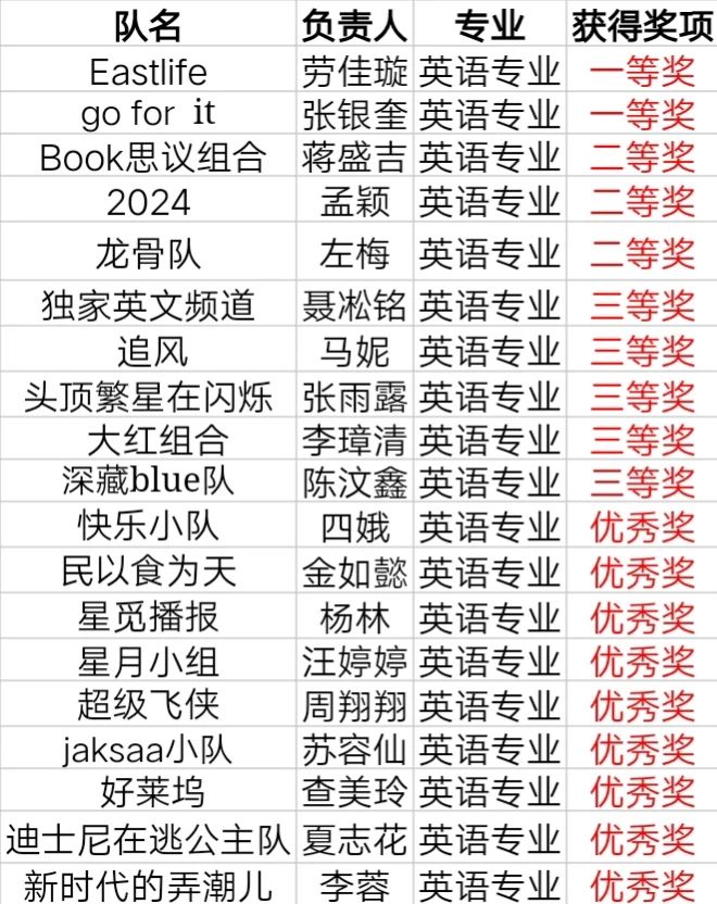 经过激烈的角逐,最终评选出了一等奖、二等奖和三等奖。获奖选手们纷纷表示,这次比赛不仅让他们收获了宝贵的经验和知识,更让他们认识到了自己的不足和需要努力的方向。他们将以此次比赛为契机,继续努力提升自己的外语水平和综合素质。