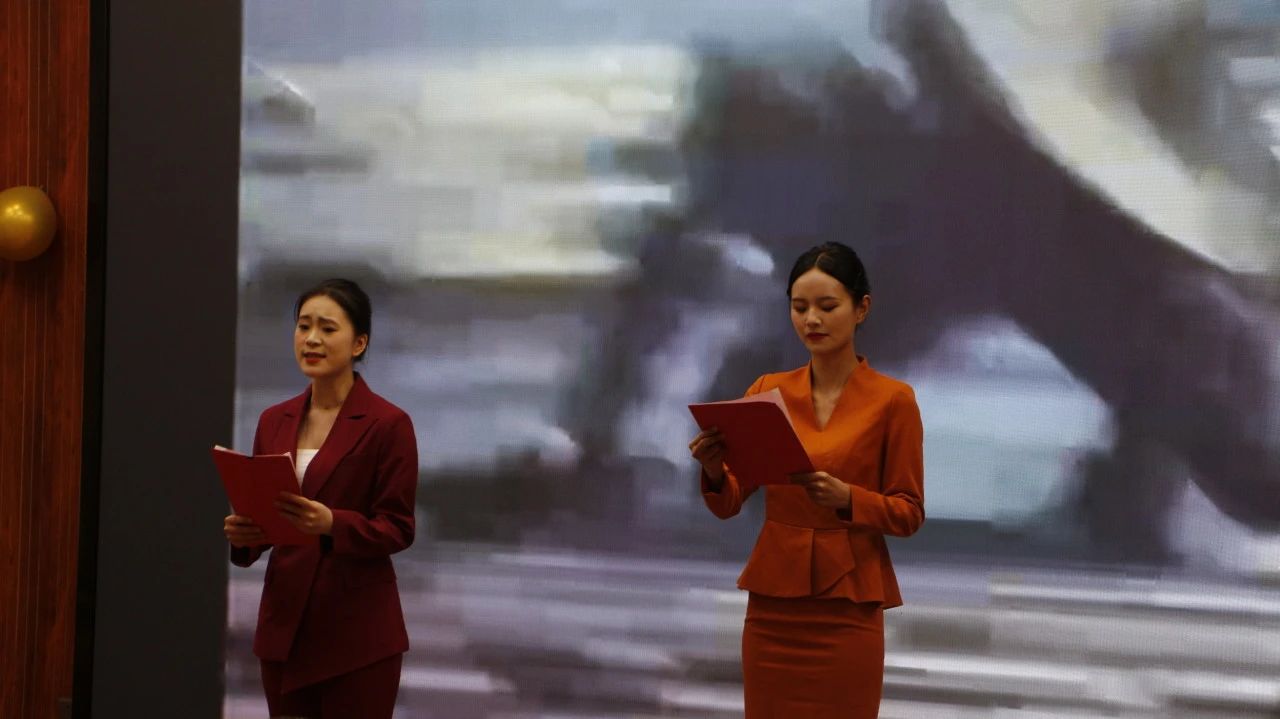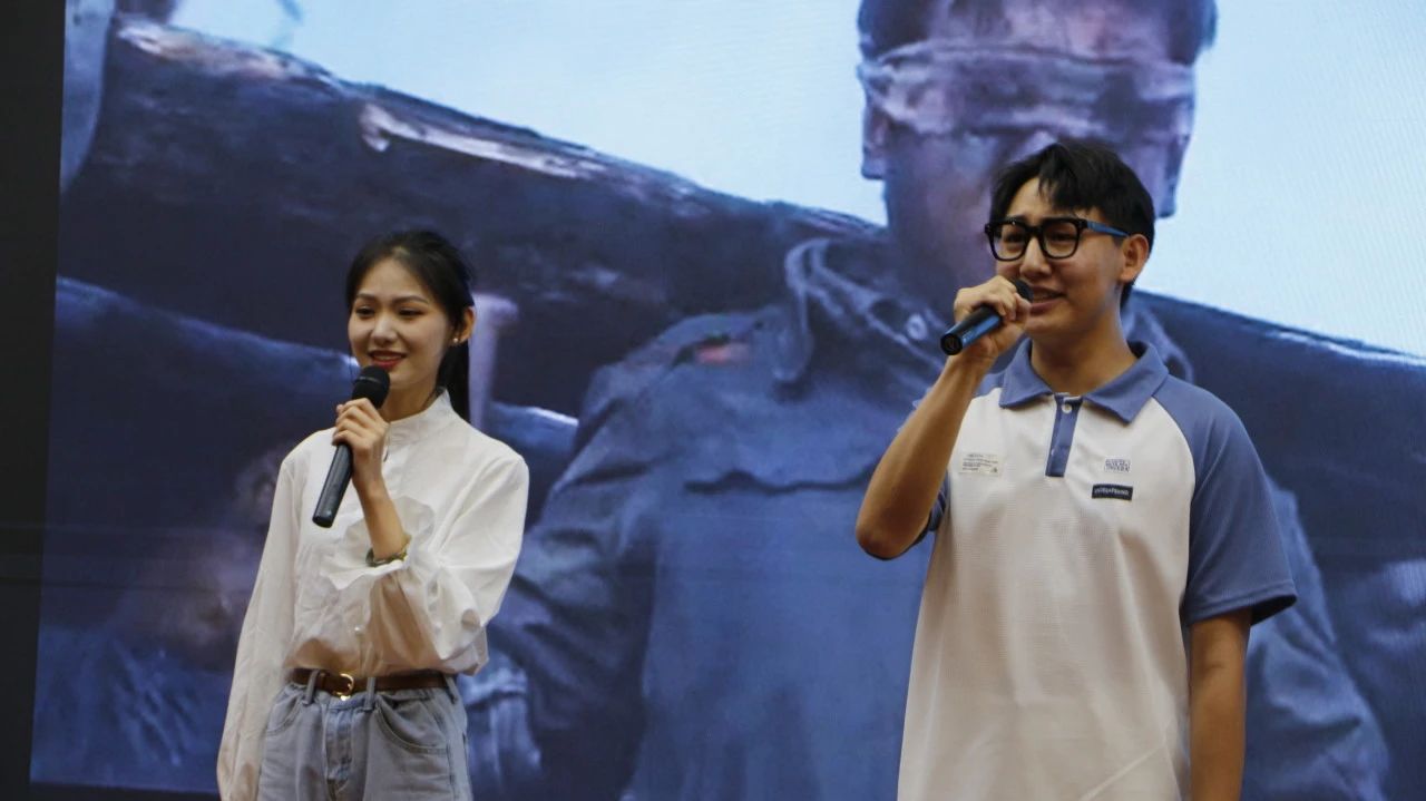 陈星睿和吴彤同学身着民国时期的青年服装,用激情饱满的声音为我们带来了《读中国》的朗诵,诗歌通过丰富的历史意象和现实观照,勾勒出了一个历史底蕴深厚、热情开放包容的大国形象。