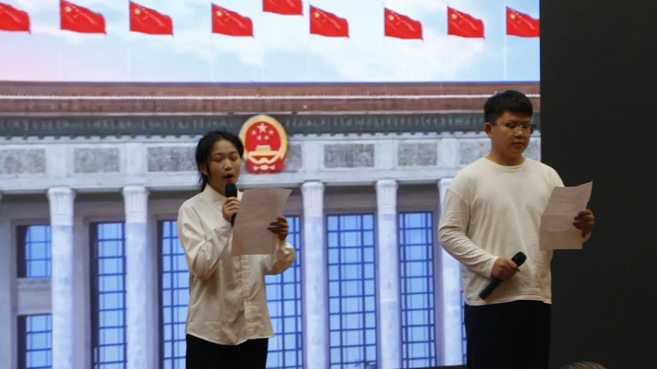 “红日生在东方,其大道满霞光”,随着配乐声的响起,不禁让人感受到了祖国的繁荣昌盛和希望,张慧敏同学和凌秋婷朗诵《万疆》,将这种情感传递给了听众,听众能够深刻感受到诗词所要传达的爱国情怀和华夏精神。