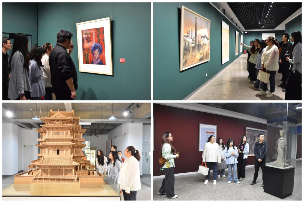 双方共同参观了玉溪师范学院美术馆“时代之美——云南美术馆馆藏精品展”,在敦煌壁画和麦积山石窟、榫卯结构的木质建筑复刻、陶器和瓷器等极具特色的展品中开启沉浸式艺术之旅。