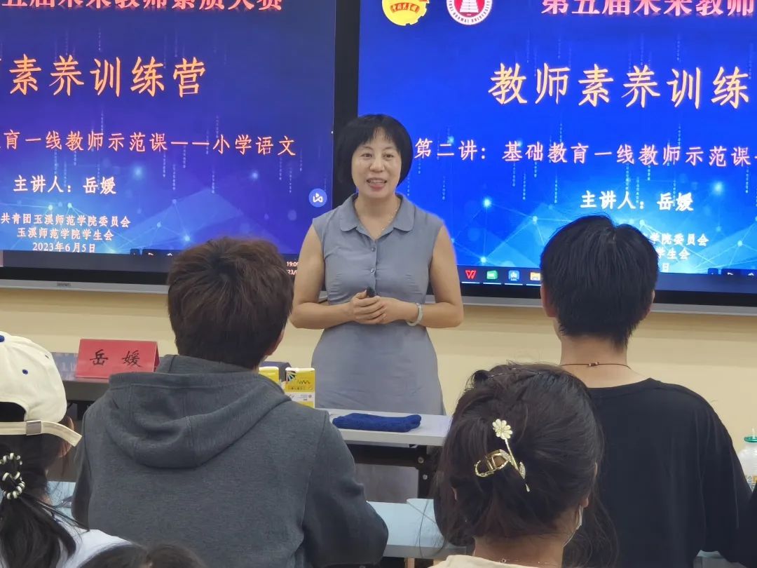 “教师素质训练营”第二期于2023年6月5日在12教106教室举行。本期培训有幸邀请到玉溪市小学语文专职教研员岳媛老师对参训学员进行培训。