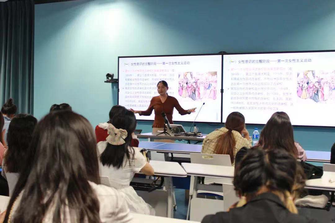 随后,左兴玲老师分别从古至今,从国外到国内讲述了这四个方面的内容,强调了女性主义不是女人的主义,只要你支持两性平等,主张消除性别歧视,你就是女性主义者。