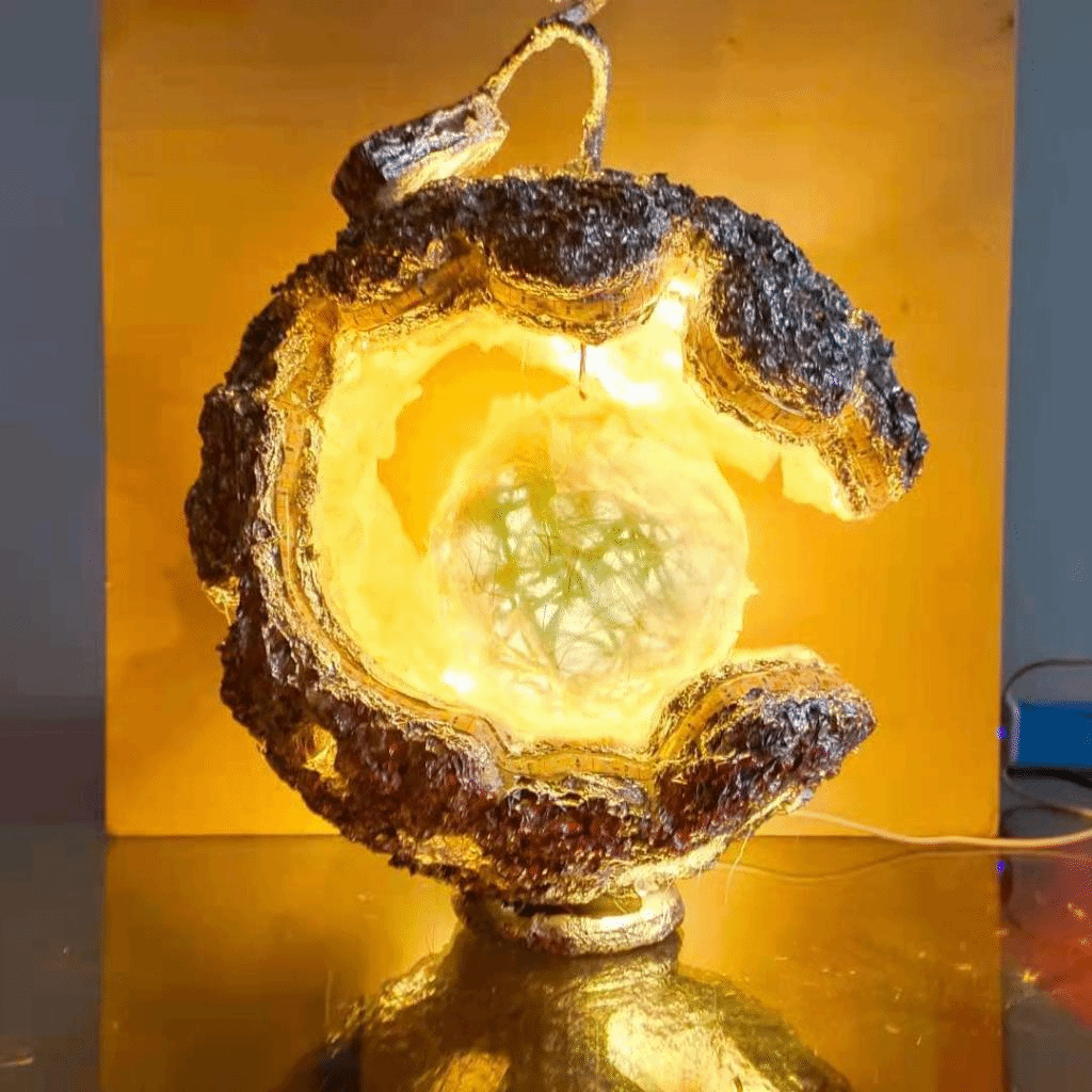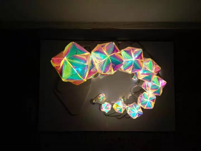 比赛过程中,参赛作者分别上台依次对各自的作品进行解说,每个参赛作者作品不管是解说还是设计思想都有着各自的创新和闪光点。同学们都试图借助自己的作品反映社会生活中的一些不文明现象,寓意生物多样性遭到的破坏,警醒我们每个人都应该保护我们赖以生存的家园,呼吁同学们节约资源,保护环境。作品则为参赛同学通过提取废弃垃圾中的一些元素结合环保与生物多样性的相关知识而做的创意作品灯。在参赛选手解说和展示期间,指导老师给予打分与点评。