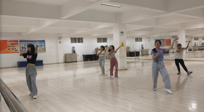 在这次活动里社团负责人发现训练的难度和强度在增加,在加强“压腿”和“压腾”训练的同时,对成员进行“蹲”的训练、手臂的训练,主要是训练前腿、旁腿、后腿的控制能力和腿的开度,以及手臂的力度。在进行基础训练的同时,每节课还都安排一些啦啦操舞蹈的基本步法、手位的动作训练,并分小节学习简单的动作,为阶段动作的编排打下坚实的基础。