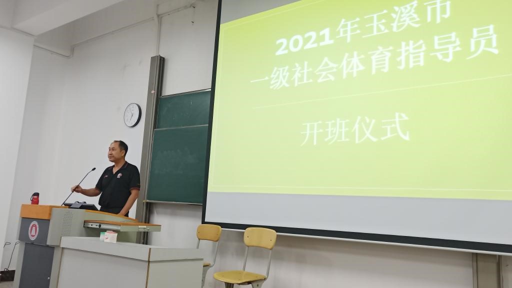 2021年10月3日至8日,玉溪市教育体育局联合玉溪师范学院体育学院,在一级社会体育指导员培训基地玉溪师范学院举行了2021年一级和二级社会体育指导员培训,培训取得圆满成功。本次培训由杨志龙书记、雷小明副院长、高东梅副教授、王绍芬副教授、王博源博士五位教师进行教学,教学秘书张丽琼协助管理,课程内容主要以理论为主。在开班仪式上玉溪师范学院体育学院杨志龙书记致欢迎词并讲解了社会体育指导员的功能。