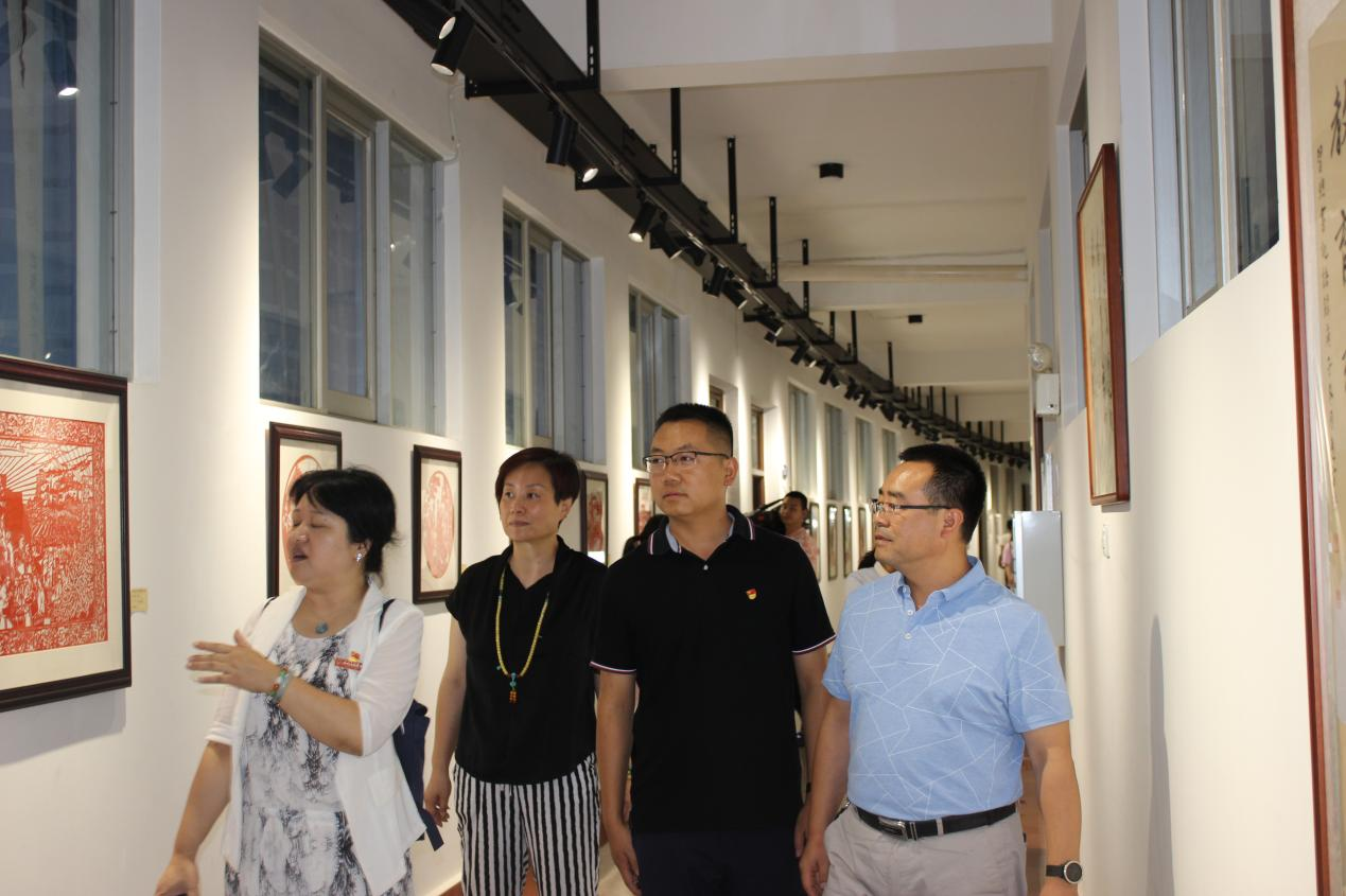 调研中,副院长王晶晶向领导们介绍了长廊式作品展示的特色,简单说明了我院学子创作的思想和创作方法,此次的作品展汇集了多幅优秀艺术作品,涉及书法、美术、剪纸等多种艺术门类。书法展主要包括小篆,楷书等书体,风格迥异,形式多样;美术包括水墨画、国画等形式,具有很强的感染力;剪纸以建党100周年以及中国抗疫精神为主题,符合时代特征。作品均由我院学子所创作,表现出对建党100周年纪念日的喜悦、也展示了民族大团结、社会大繁荣,展现了中华民族文艺复兴。参观过程中,各位领导对我院举办庆祝中国共产党成立100周年书画手工作品展工作给予充分肯定,并指出我院师生在作品中充分展示我们伟大的党在新时代征程中取得的辉煌成就,唱响了共产党好、社会主义好的时代主旋律。