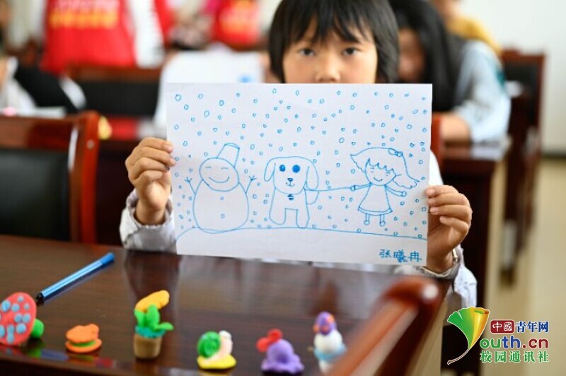 图为小朋友们美工课上的的部分作品成果展示。中国青年网通讯员 黄铭崧 摄