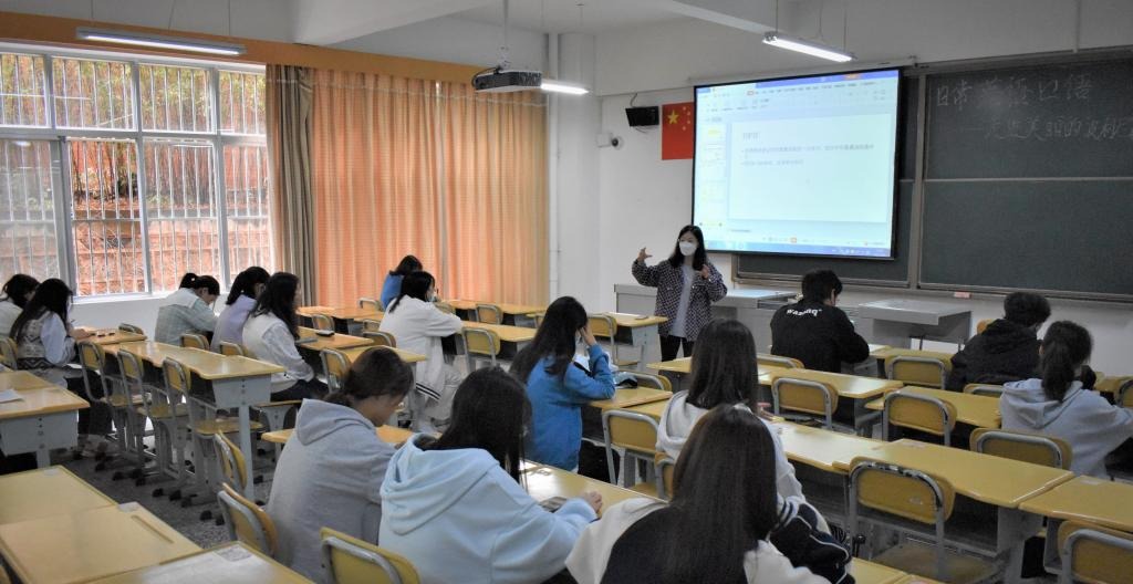 活动现场,同学们用流利的英语向同学们分享了自己难忘的旅行过程,马倩老师则通过视频的方式带领同学们走进美丽的波利尼西亚,向同学们介绍波利尼西亚的文化和礼仪,组织同学们朗读相关词汇与句子,在朗读过程中,马老师纠正了同学们的发音,并告诉同学们正确的发音是学好英语的重要前提,希望同学们注意发音,正确发音。最后进入翻译环节,同学们积极主动表达自己的想法,马老师认真点评同学们的翻译情况,同学们认真听讲,气氛活跃轻松,掌声不断。整个活动在大家的欢笑声中落下帷幕。