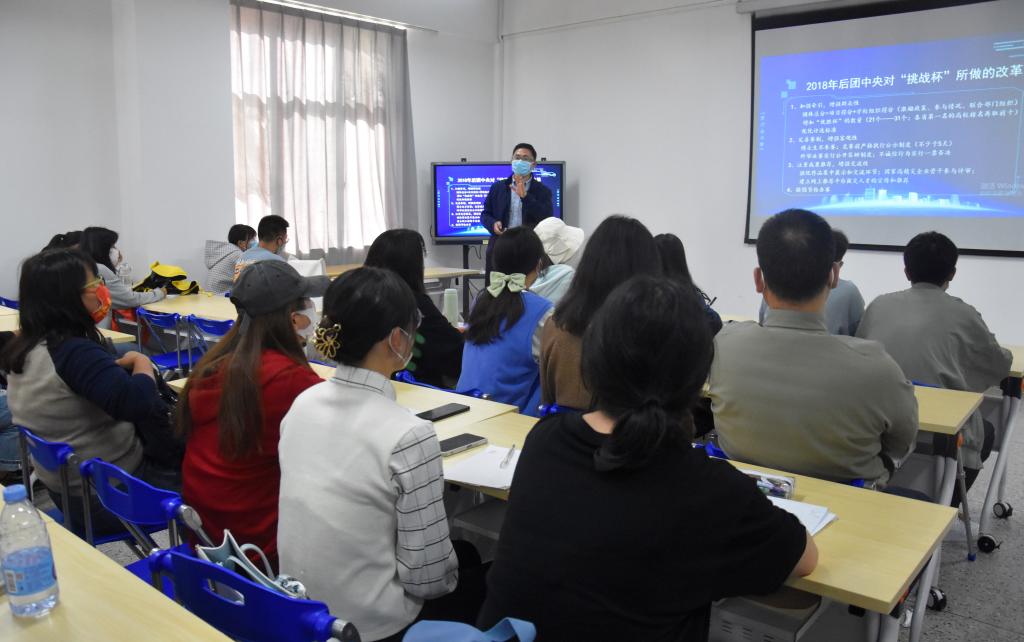 在活动过程中,罗辉老师对“挑战杯”系列竞赛和“互联网+”创新创业大赛的比赛流程、基本要求、优秀项目打造要点以及其它相关通知进行了详细解说,并云南大学2021年校赛部分项目为例,向同学们介绍了“挑战杯”的各系列竞赛。最后,罗辉老师向同学们分享了两个荣获国家金奖的参赛案例,并指出创业是一个持久且辛苦的过程,希望同学们能坚持不懈、努力创新,不断拓宽自己的创业思路,争取做出好的创业项目。