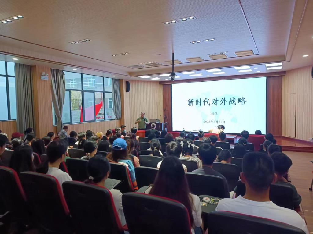 5月31日晚,玉溪师范学院马克思主义学院聂耳报告厅迎来了一堂特别的思政课,副校长杨伟为美术学院、外国语学院、商学院师生讲授“新时代对外战略”思政课,共计70余名师生聆听了讲座。