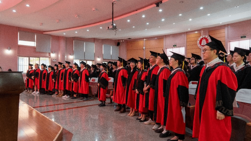 学位授予仪式正式开始,美术学院副院长王飚教授宣读了《美术学院学士学位评定分委员会关于授予234名2023届本科毕业生学士学位的决定》,导师们为毕业生行拨穗礼,颁发毕业证书,并合影留念。