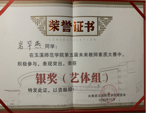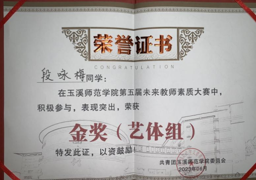 5月27日,由校团委主办的“青春践行二十大 培根铸魂育新人”第五届未来教师素质大赛复赛顺利举办,美术学院段咏梅、岩罕燕、宋庆桐3位同学过关斩将,喜获佳绩,其中段咏梅同学荣获艺体组金奖,岩罕燕同学荣获艺体组银奖,宋庆桐同学荣获艺体组优秀奖。