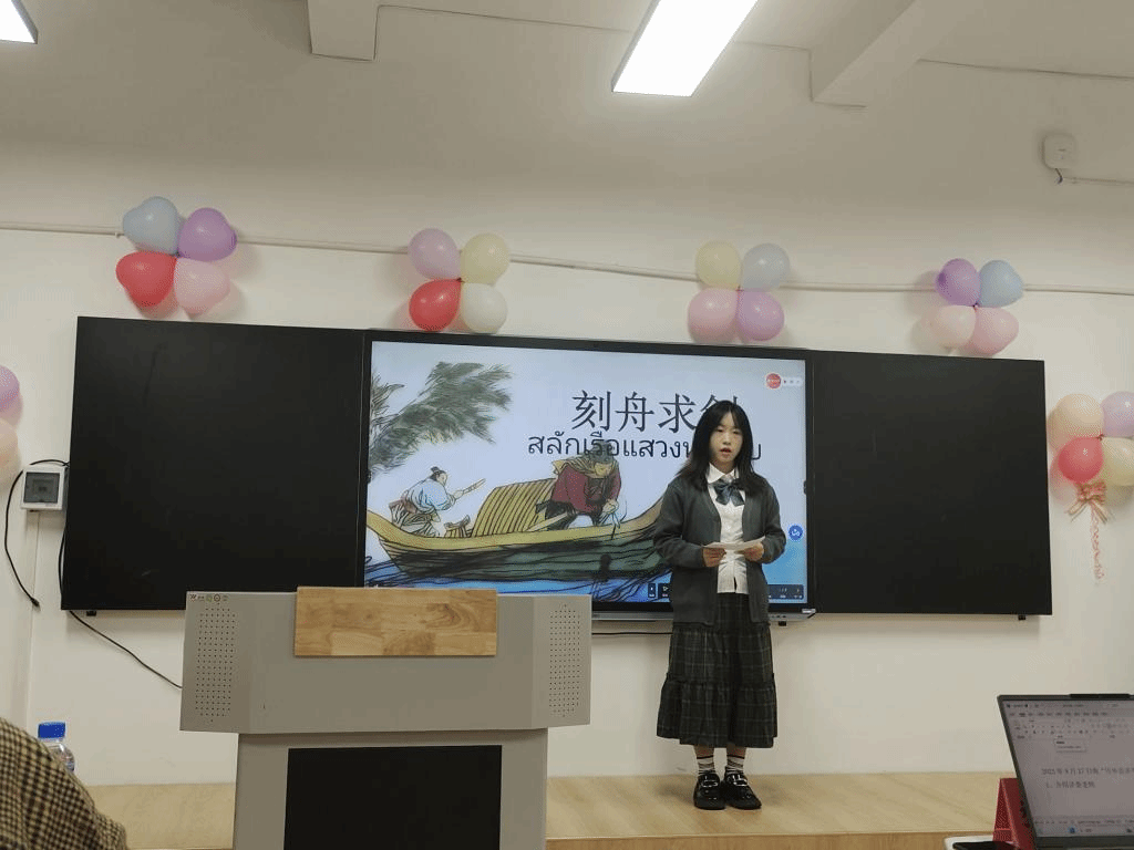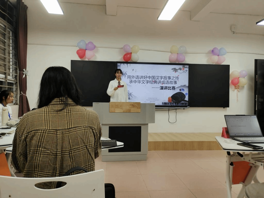 在比赛中,来自全校的各位参赛选手以多种多样的展示方式生动地讲述了成语故事,有的选手穿上了汉服,有的选手自带道具,整个比赛氛围既紧张又赏心悦目。整个比赛紧凑有序,各位选手们用英语、泰语和缅甸语向观众们展示了不同的成语故事,给大家带来了一场优秀文化盛宴。用外语讲好了中国成语故事,既展现了专业能力,锻炼了口语,又弘扬了中华优秀传统文化,坚定了文化自信,热情洋溢的比赛氛围深深地感染了在场的所有观众。