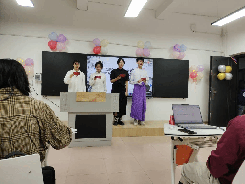 比赛结束后,各组评委老师根据比赛选手演讲的内容指出其存在的问题,并激励同学们结合专业知识讲好中国故事,将中华文字经典与中国故事牢记于心,提高自信心,克服紧张情绪,积极参与各种比赛。