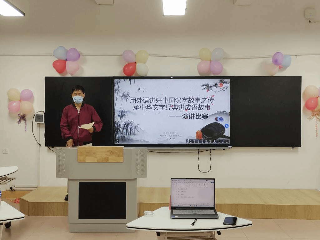 外国语学院于2023年9月27日19:00在二教举办了以“用外语讲好中国汉字故事之传承中华文字经典·讲成语故事”为主题的演讲比赛决赛。此次比赛分为英语专业组,非英语专业组及泰缅语组,英语、泰语和缅甸语9名老师分别担任评委。