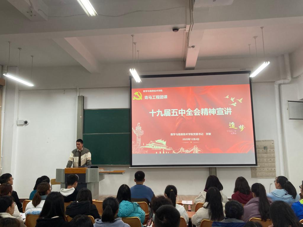 数信学院党委书记张敏以“学习十九届五中全会精神”为题,向同学们讲述了一堂生动精彩的团课。他提出,当代青年大学生要能够经受新时代的考验,肩负使命,主动承担责任,做一个有理想、有担当的奋进青年;他强调,作为学院的青年骨干,要学会“8种本领、12种心理素质、14种核心能力”。