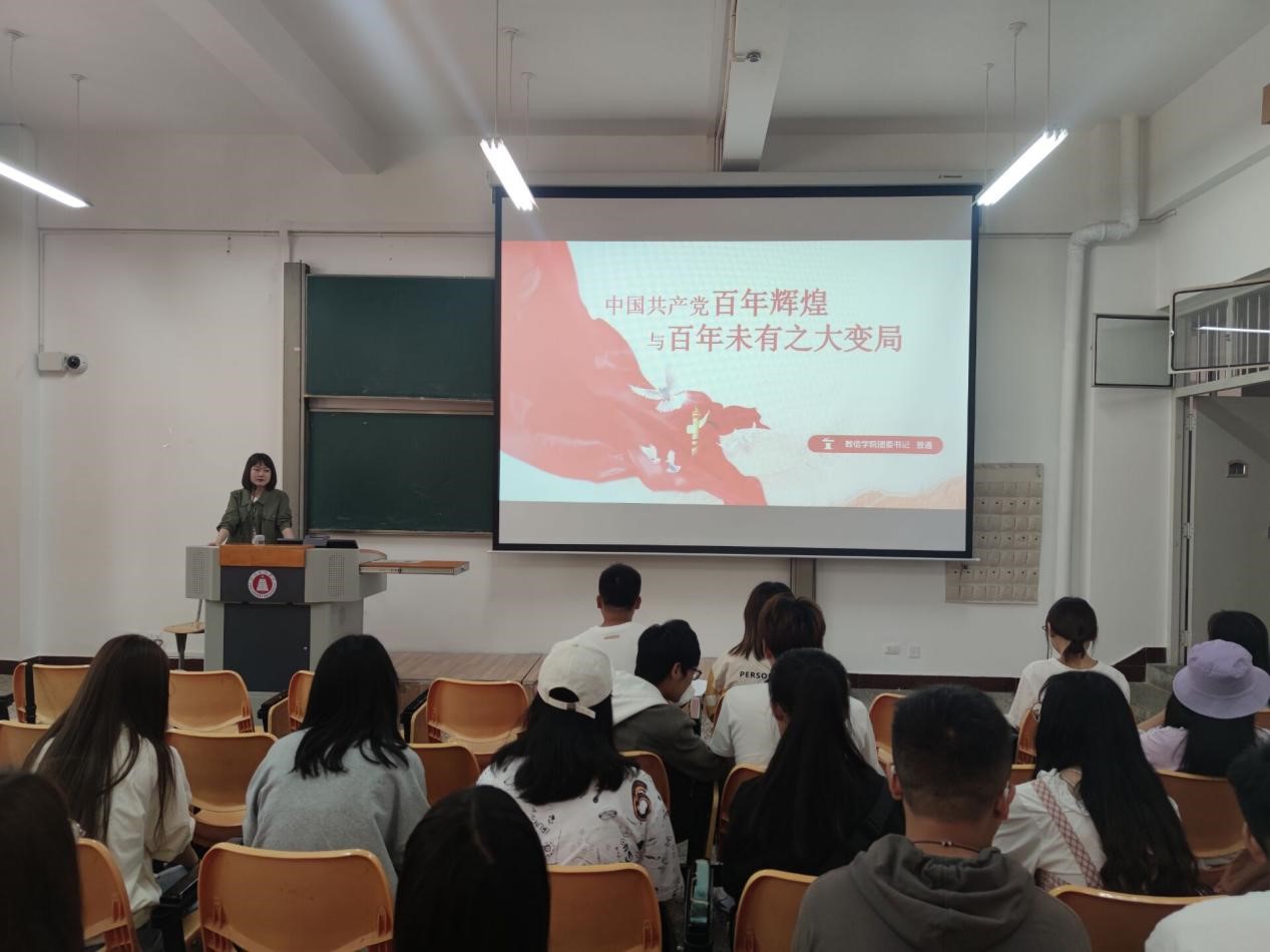 活动伊始,主讲老师普通从“党的百年辉煌业绩、百年未有之大变局、百年辉煌为应对百年大变局提供重要条件”三方面给同学们上了一堂意义非凡的课。普通老师向同学们讲述了中国共产党历史上的三个光辉历程及其贡献,百年大变局的由来、表现以及辉煌历程为中国共产党应对百年大变局提供的七个基础条件。最后,同学们分享了此次团课的收获。至此本次活动圆满结束。