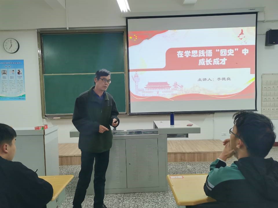 活动伊始,数信学院团委副书记吕加贤向大家介绍了本次讲座的主讲老师,并强调了会场纪律。紧接着李德良老师以“在学思悟“四史”中成长成才”为主题,给同学们上了一堂意义非凡的团课。他从“传承红色基因,夯实理想信念的基石”、“不忘初心使命,坚定以人民为中心的立场”、“弘扬革命传统,练就建功立业的本领”、“汲取历史智慧,担当强国复兴的使命”四个方面详细的指出了当代新青年学习中国四史的重要性与必要性。李老师通过革命战争、抗疫精神等事例告诫我们要重视改革开放史,珍惜现在的劳动成果,为实现中华民族伟大复兴贡献智慧和力量!