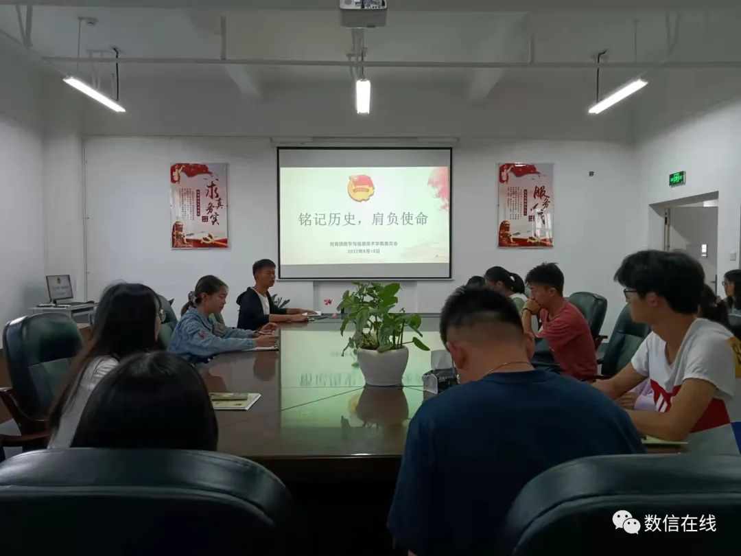 为加强团支部建设,发奋贯彻党总支关于提高思想建设理念,凝练和培育大学生精神,加强大学生思想政治教育,数学与信息技术学院于2002年6月15日下午18点,在实训大楼A301召开铭记历史,肩负使命主题团日活动。本次会议由学生会组织部部长丁洪浩主持召开,数信学院各班团支书参加会议。