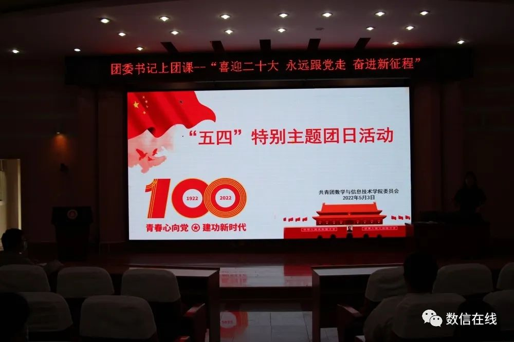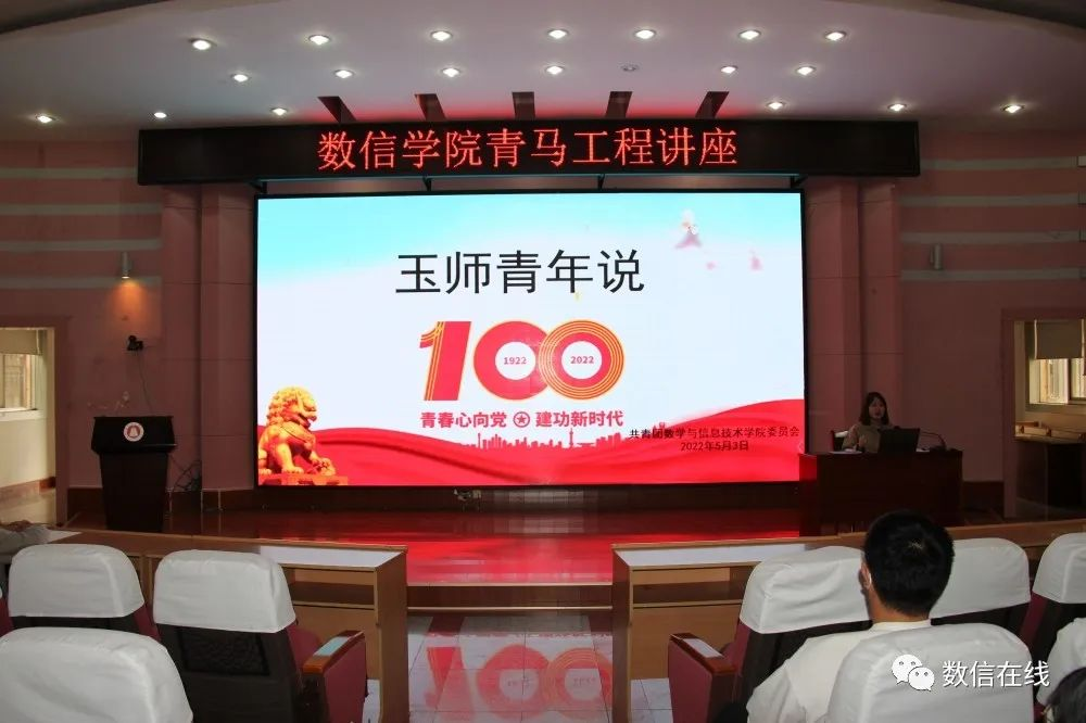 为迎接中国共产主义青年团成立一百周年,鼓舞同学们发挥青年的作用,数信学院团委于2022年5月3日星期二中午12:00在科学讲堂开展了“玉师青年说”主题团日活动。该活动由数信学院团委书记普通老师主讲,参与人员是数信学院团委干部、青年志愿者协会干部和各班级代表。