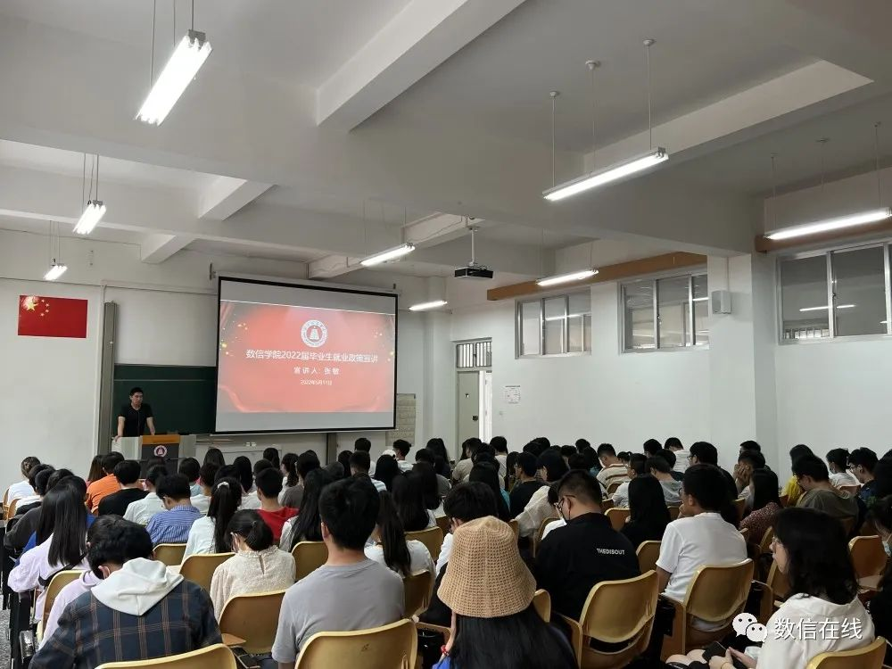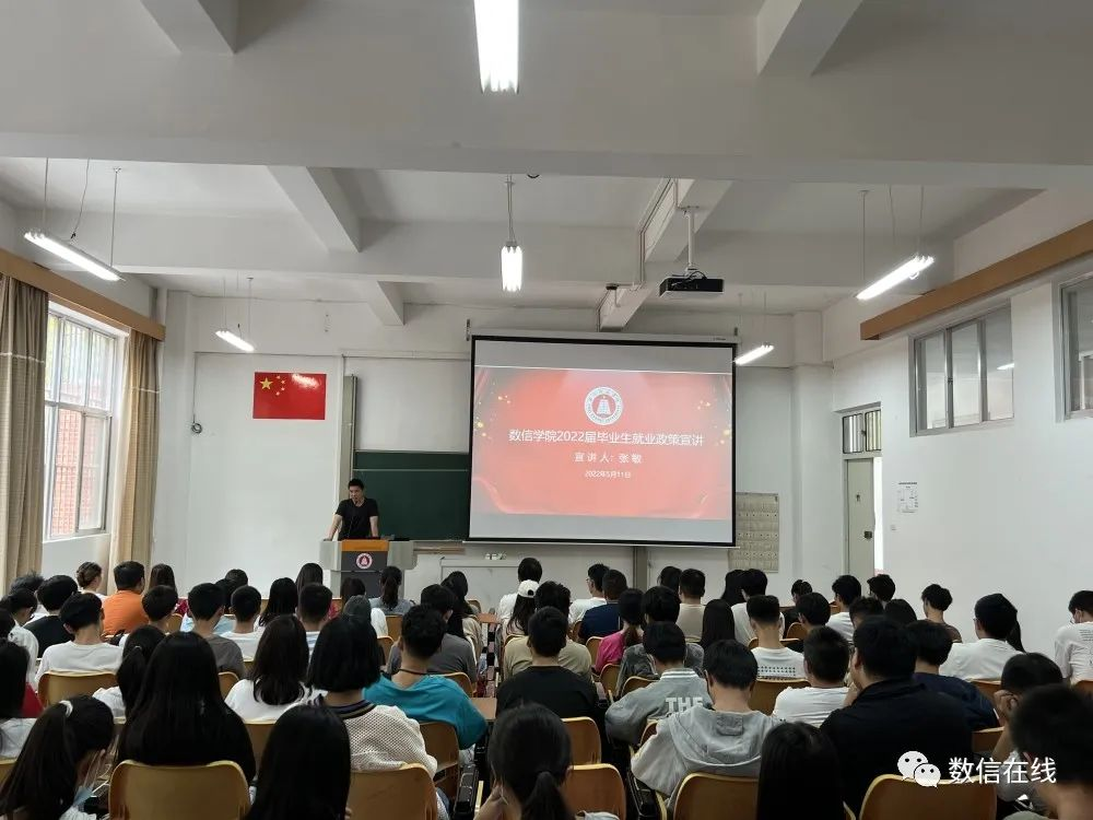 为进一步引导我院2022届毕业生明晰就业形势,增强就业竞争力,做实做好毕业生就业指导工作,数信学院于5月11日在14教106组织开展就业政策宣讲会。此次宣讲会由学院党委书记张敏主讲,辅导员詹婷与2022届毕业生参加本次宣讲。