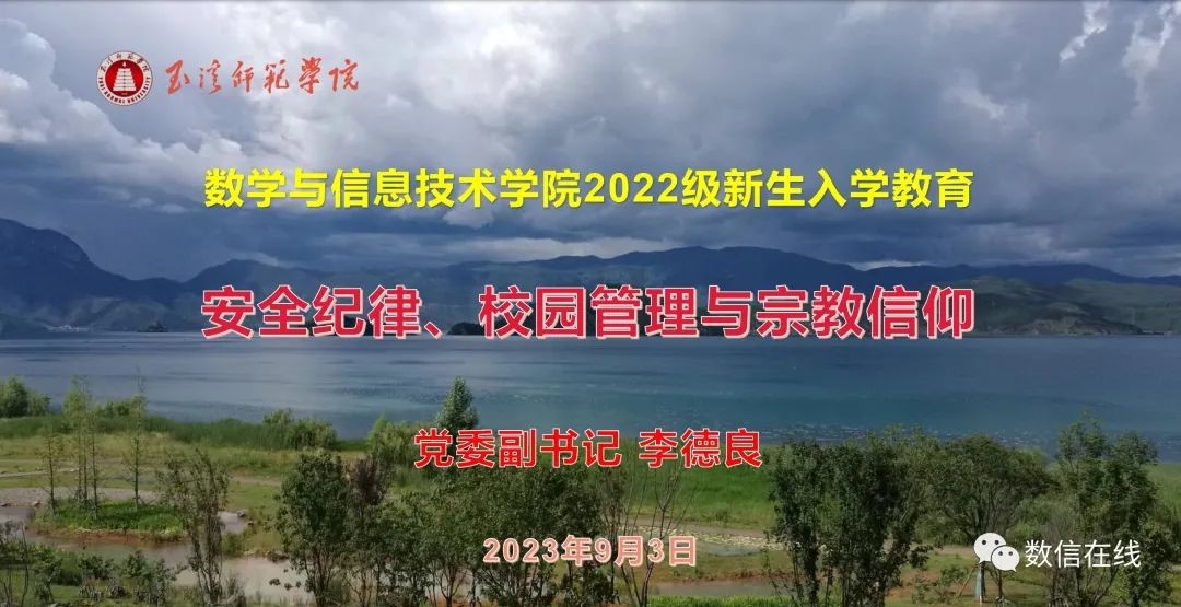 在2023级数信学院新生开学典礼暨新生入学教育活动中,数学与信息技术学院党委副书记李德良为新生们进行了关于安全问题的培训,下面让我们再次回顾一下党委副书记李德良的这次培训吧。