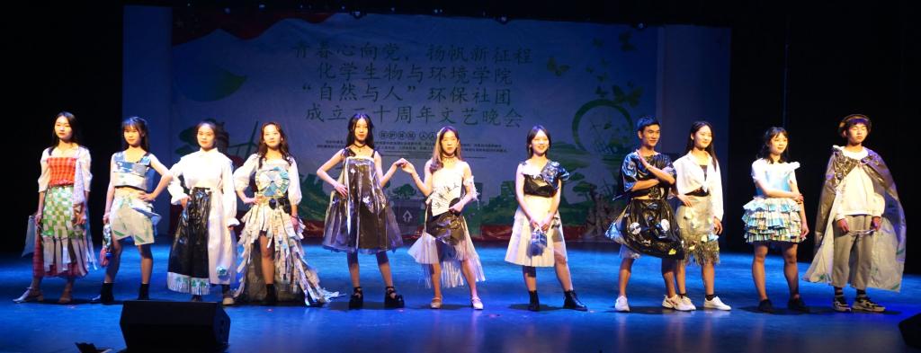 在Dream persuer乐队开场曲中,晚会节目演出正式开始。演讲《党在我心中》表达了青年心向党的坚定信仰和对党成立100周年的祝福。由“自然与人”环保社团带来的《旧物回收,魅力展示》走秀,利用旧物自制的奇特服装,个性张扬时尚大方,不仅给观众带来了不一样的视觉体验,充分展示了环保理念。