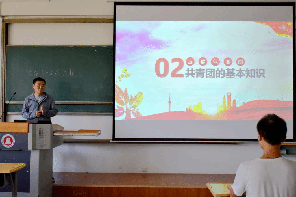 刘桥刚老师讲解了中国共产主义青年团的性质、光辉历程、团徽团旗团歌、中国共产主义青年团入团誓词以及团员的义务和权利。此外,刘老师还讲解了中国共产主义青年团基层组织“三会两制一课”实施细则和五 四发展新团员发展程序。