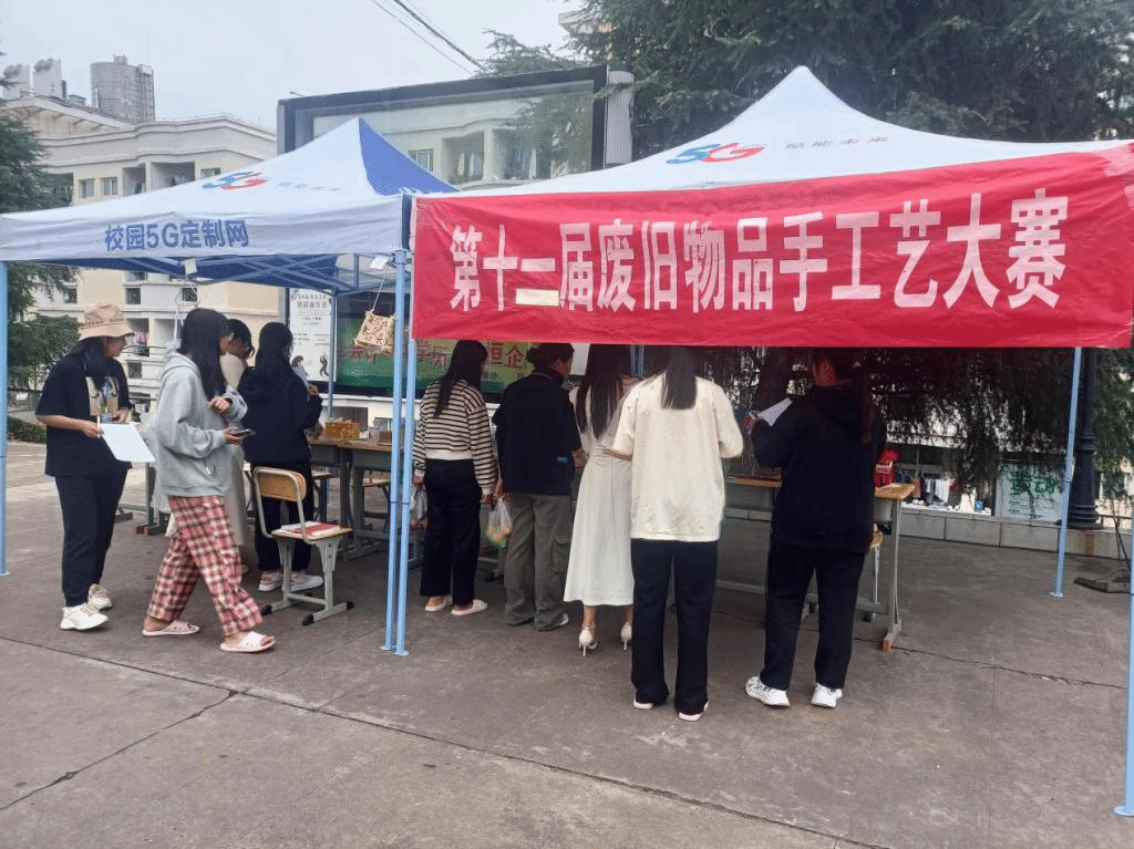 为培养同学们的环保意识,养成废旧物品再利用的好习惯,激发同学们的创新思维,化学生物与环境学院“自然与人”环保社团于2022年10月8日在品味苑门口举办了第十二届废旧物品手工艺大赛。