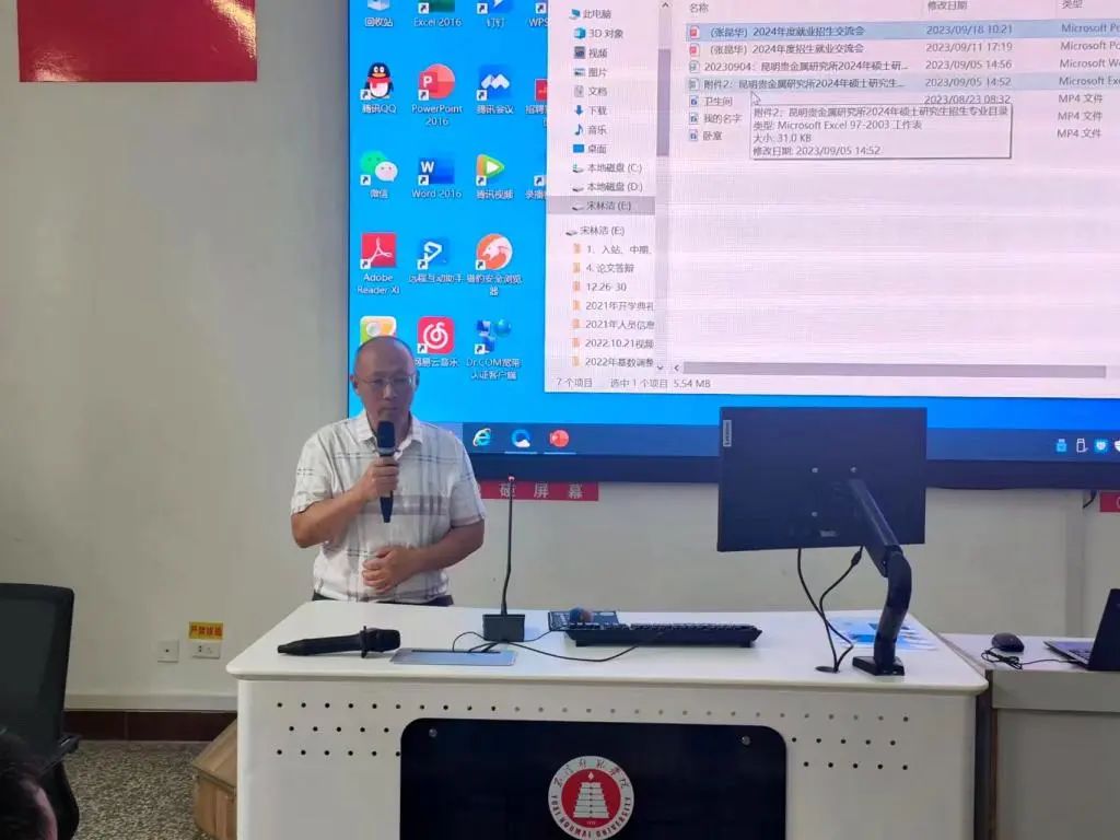 张昆华院长首先对昆明贵金属研究所的概况、本科生就业待遇和研究生招生政策做了简单介绍,让同学们对研究所有了初步的认识。随后,张昆华围绕昆明贵金属研究所的科研平台、研究生待遇、住宿情况、校内资源等方面进行详细介绍,进一步激发同学们的考研兴趣。最后,张昆华教授为同学们进行了答疑解惑,对个人考研规划、目标设定、考专硕还是学硕等一系列问题一一做了解答。