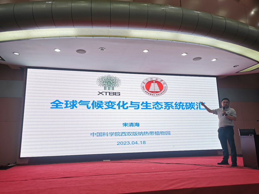 中国科学院西双版纳热带植物园宋清海研究员作“全球气候变化与生态系统碳汇”报告