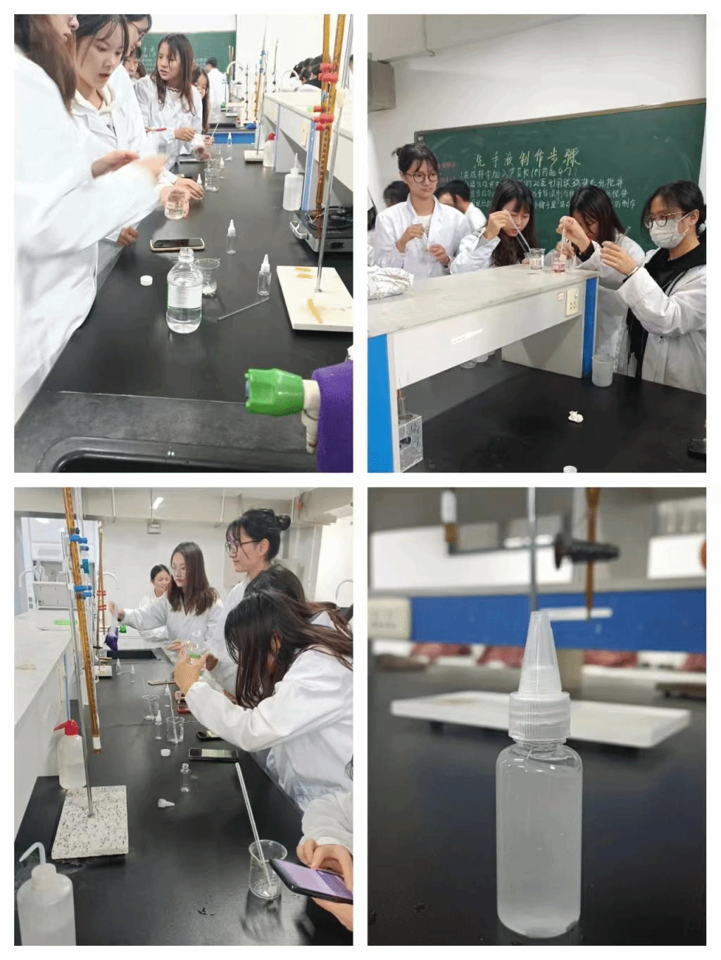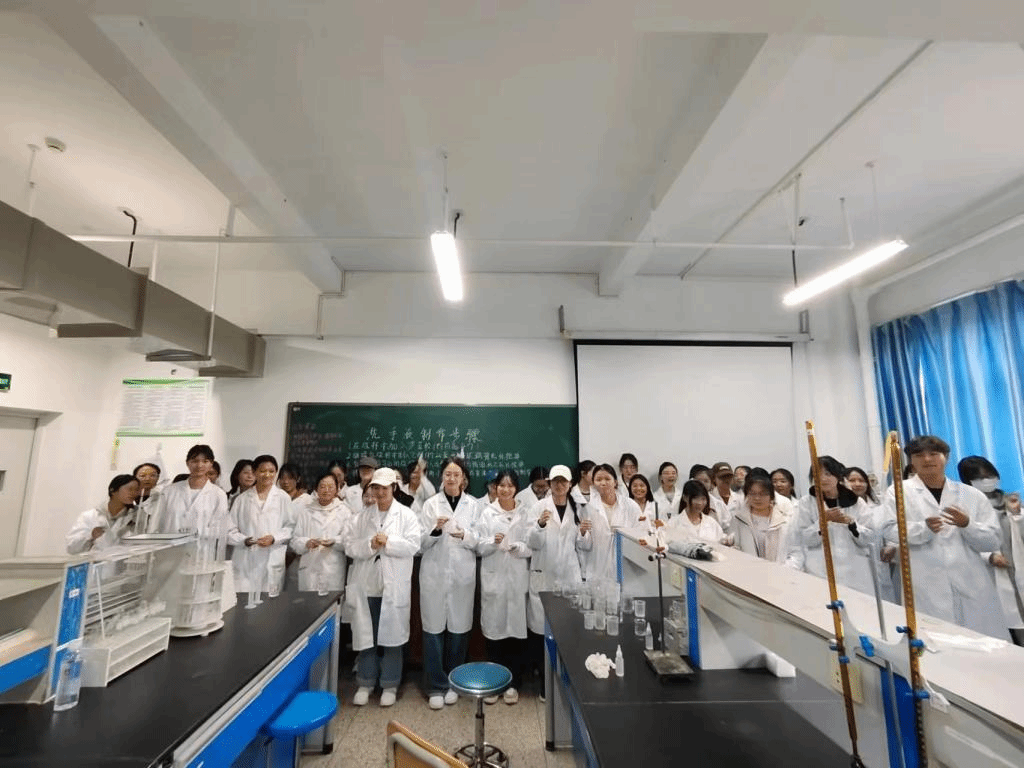 为培养同学们的动手能力,有一个健康的生活,2023年10月15日早上九点化学生物与环境学院生化畅游协会负责人组织社团成员于实训大楼B0804实验室开展洗手液制作活动并取得圆满成功。