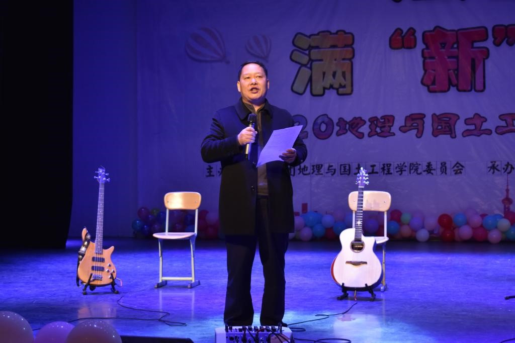 相聚师院,携梦启程,为了迎接2020级新生的到来,展现地理与国土工程学院莘莘学子的风采。2020年12月13日 19:00,由共青团地理与国土工程学院委员会主办、地理与国土工程学院团委学生会承办的“遇见你 满‘新’欢喜”主题迎新晚会于人文讲堂炫目启航。莅临此次晚会的嘉宾有地理与国土工程学院党委书记王寅,党委副书记郭建明,副院长阳利永、秦发侣,总辅导员余恩晓,辅导员姚鹏举、王芸娇以及校学生处、校团委、心理咨询中心、各学院学生会的代表。
