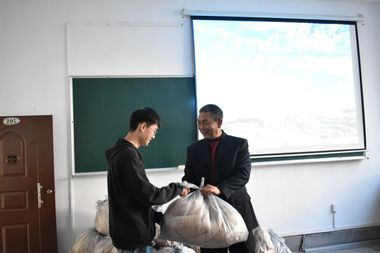 寒冬将至,温情暖心。2021年11月25日下午4时,地理与国土工程学院在第5教学楼205开展寒被发放暨新生座谈会活动,地理与国土工程学院党委副书记郭建明、团委书记马宾宾参加本次活动。