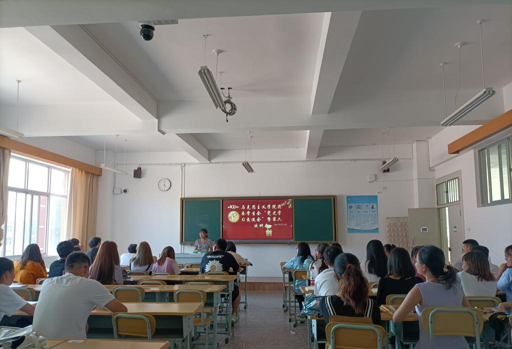 2021年5月18日下午17时,马克思主义学院团委学生会“党史学习交流会”暨第六次例会在14教301室召开,本次例会由冯德康主席主持,全体团学成员参加。