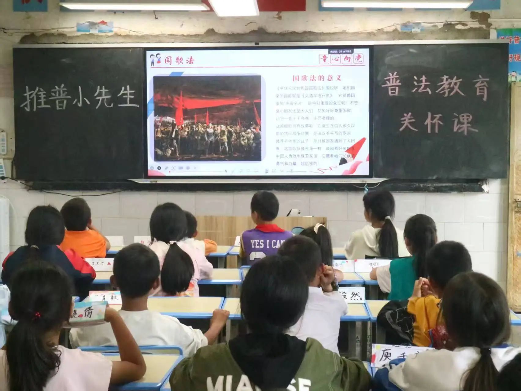 以普法宣传为契机,培育法治意识。推普团在“云上坝溜”开展了一堂独特的法治教育关怀课,从国歌、国旗的发展历程到《中华人民共和国国歌法》《中华人民共和国国旗法》,再到讲述英雄故事,并同唱《国家》,帮助孩子们明白国旗的意义,感悟国歌的力量,激发孩子们的爱国情、报国志。