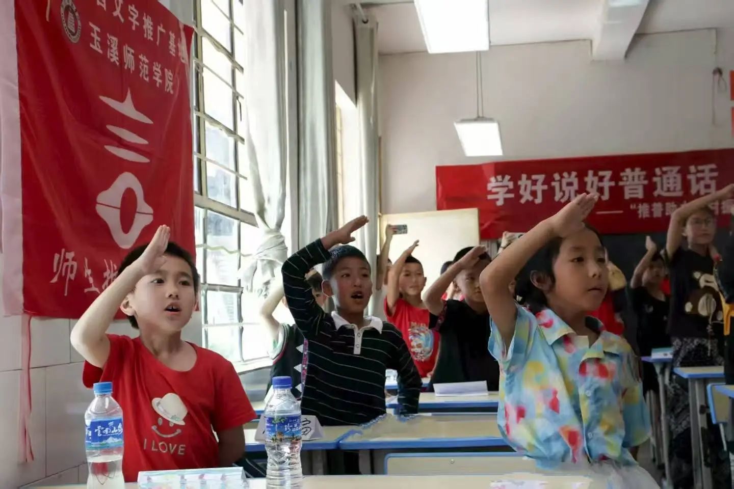 以“九个一”为抓手,创新推普形式。推普团精心设计“识、读、唱、写、辨、说、纠、画、演”九位一体的推普课程体系,通过“中国两字溯源”活动带领孩子们认识汉字演变历程,组织经典诵读培养标准发音习惯,体验软笔书法感受汉字书写之美,开展“方言找不同”游戏辨别标准发音,设置情景对话强化日常交流能力,组织“小小推普员”互相纠正发音,绘制“我心中的普通话”主题画作,编排推普情景剧在表演中运用普通话。