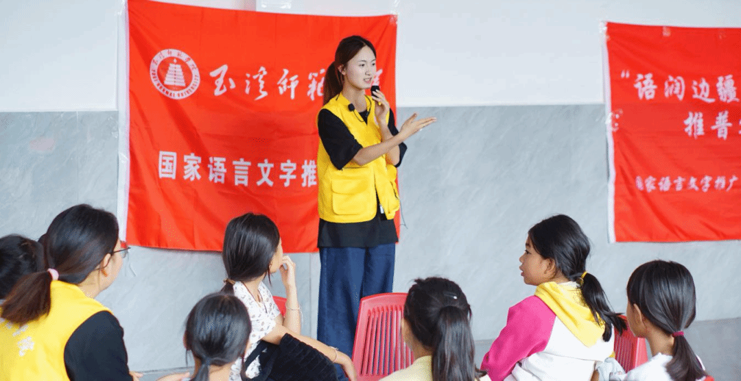 七月的版纳景真村,蝉鸣裹着花香掠过傣族庭院,村口的凤凰花热烈绽放。7月13日,玉溪师范学院文学院“语润边疆 数智传音”推普实践团踏着热浪而来,以“普通话+数字教学”的形式,用趣味课堂激活语言魅力,借文化体验厚植情怀,为村里的孩子们打造了一场“听得懂、说得好、传得远”的国家通用语言文字学习盛宴。