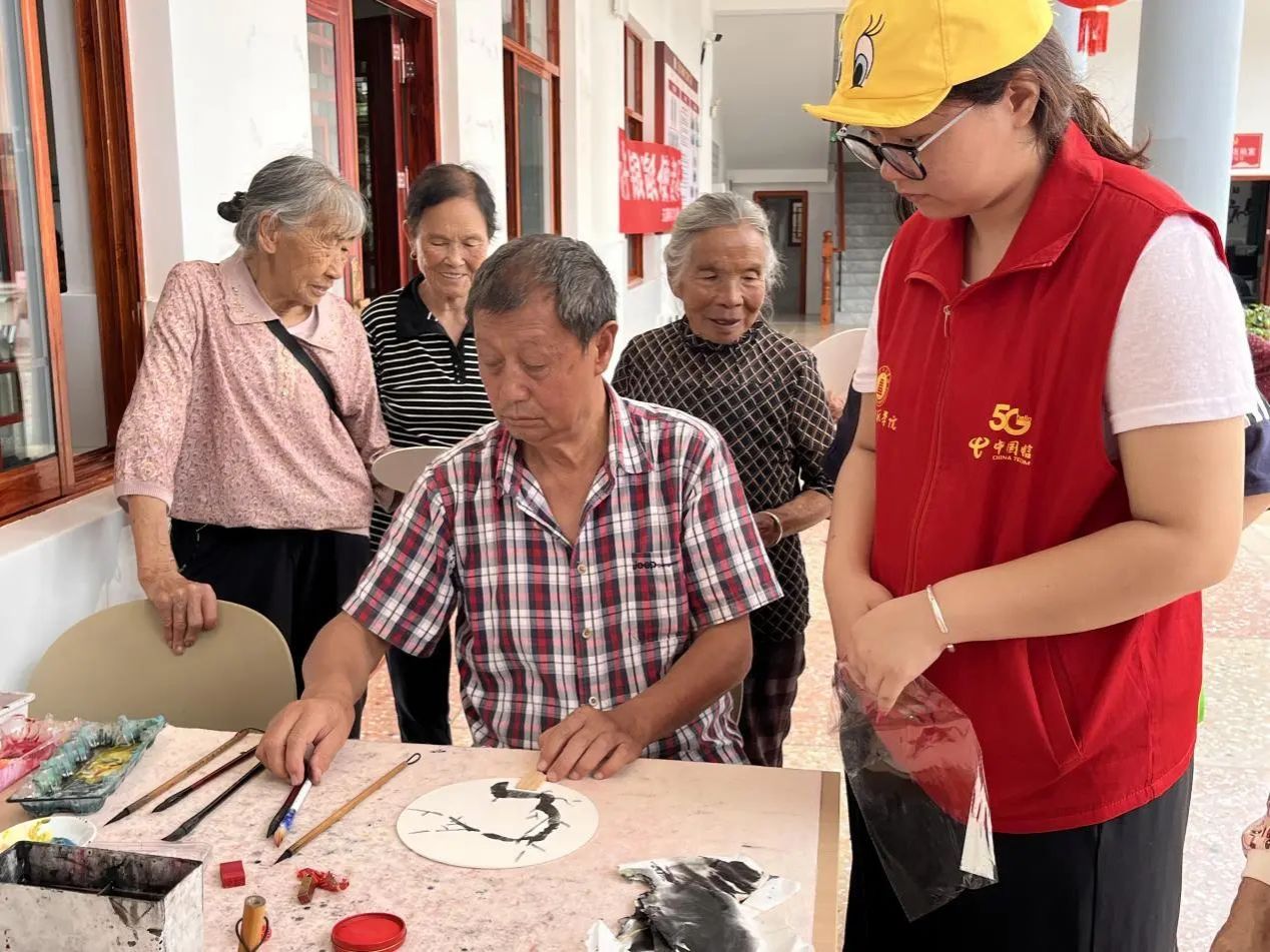 社区低龄老人志愿者发挥绘画特长,与高龄老人共同创作扇面:选图案、调色彩、题祝福,一笔一画间,扇面渐显生机。活动现场欢声笑语不断,老人们互相赠送手绘扇,指尖的温度与默契的笑容交织,让“互助”化作可触可感的温暖。