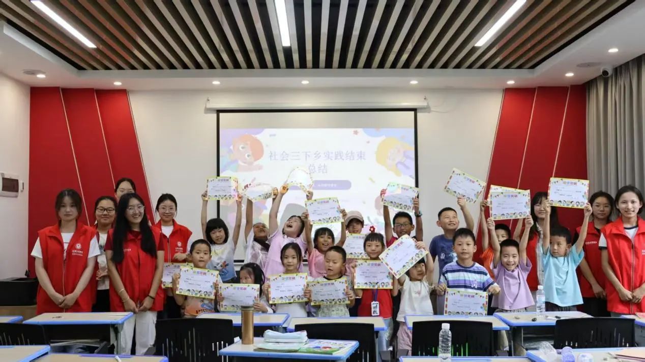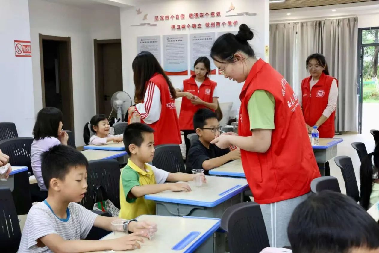 多元服务暖人心,践行以人民为中心发展思想 。围绕社区群众急难愁盼的“暑期儿童托管”问题,团队构建了“学业辅导+素质拓展”的综合服务体系,以实际行动落实以人民为中心的发展思想。学业辅导环节,志愿者们针对不同年级学生的知识薄弱点,开展“靶向式”辅导,既解决暑假作业中的疑难问题,又衔接校内课程进行预习指导,助力教育公平在基层落地生根;课外运动时段,小广场上的“趣味运动会”不仅强健了孩子们的体魄,更通过团队协作项目培育了集体主义精神;手工制作课上的生肖卡片、黏土创作,科学实验中的化学反应、物理现象观察,则在孩子们心中播下了科学探索的种子,呼应了“建设教育强国、科技强国、人才强国”的时代号召。