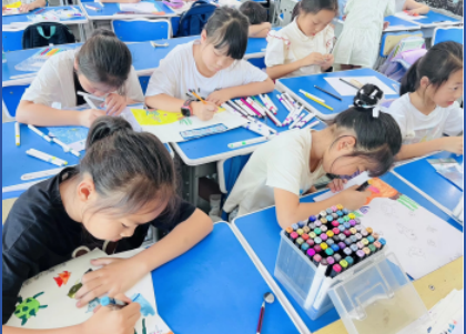 (2)非遗漆扇制作:在专业指导下,孩子们从调色、滴染到绘制,亲手制作出独一无二的漆扇。一把把五彩斑斓的扇子不仅驱散了夏日的炎热,更让孩子们领略到传统工艺的独特魅力。
