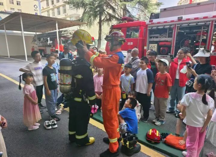 “星耀童心实践团”设计的“小小科学家”实验课备受追捧。孩子们亲手制作天然洗手液,观察化学反应过程,在实践中理解科学原理;玉溪市红塔区人民检察院专业人员则带来“未成年人普法剧场”,通过模拟校园霸凌案例,普及法律知识;消防体验活动更是高潮迭起,在红塔区消防救援大队的支持下,孩子们穿戴消防装备,通过消防员详细讲解认识各类消防器材,在参观、演练中掌握自救技能。