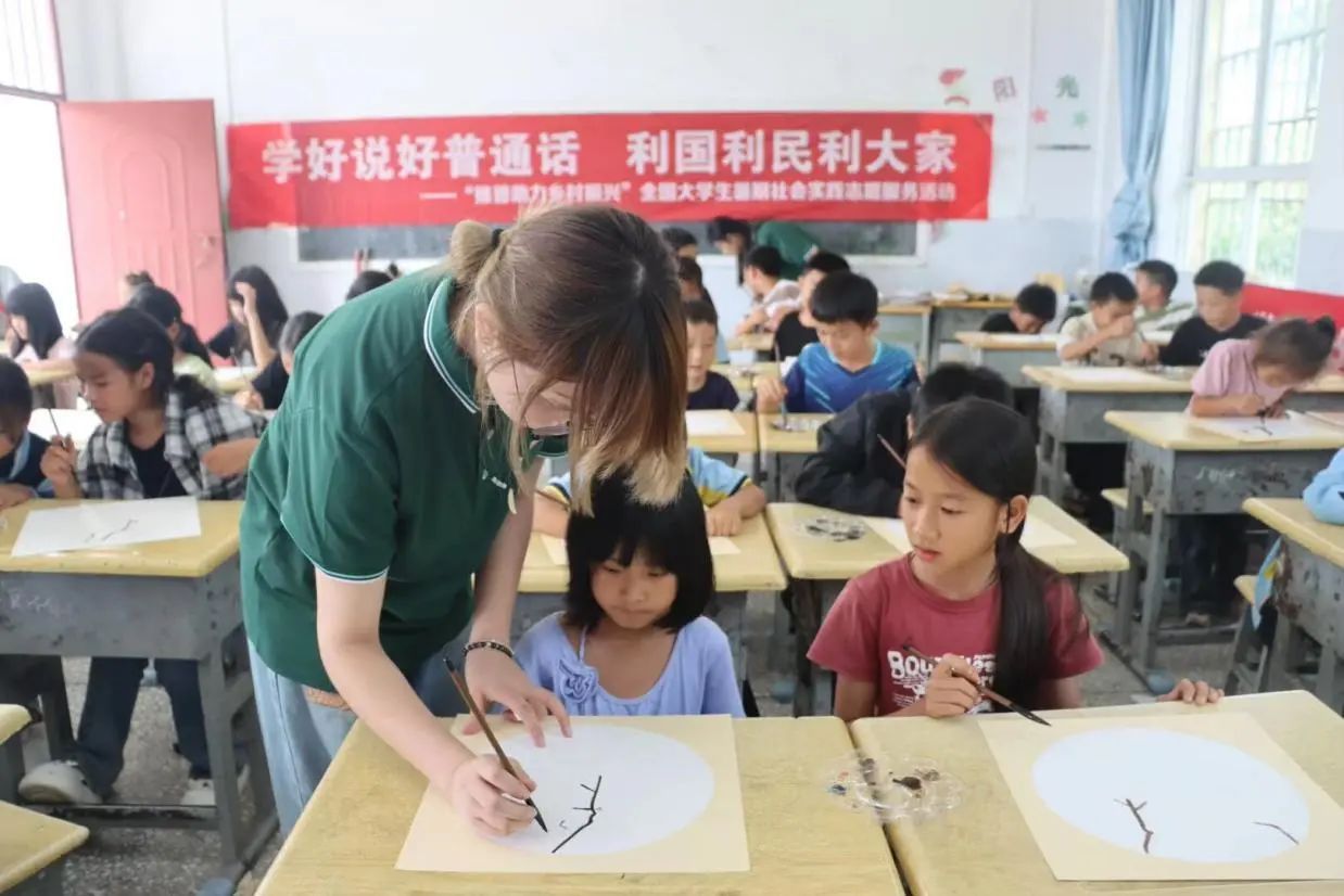 为此,推普团立足中华优秀传统文化,精心策划开设了一系列具有教育意义的特色课程,包括国画鉴赏、汉字韵律操、甲骨文中药草香囊制作等。这些别开生面的暑期课程不仅提升了孩子们的语言运用能力,更在潜移默化中培养了他们的家国情怀和中华民族共同体意识。
