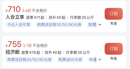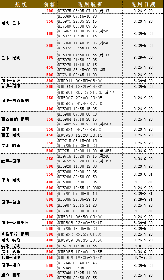 *以适用航班当前外放公布运价(不含税)为基准价,按舱位、日期提供浮动优惠,优惠后价格不得低于270元。