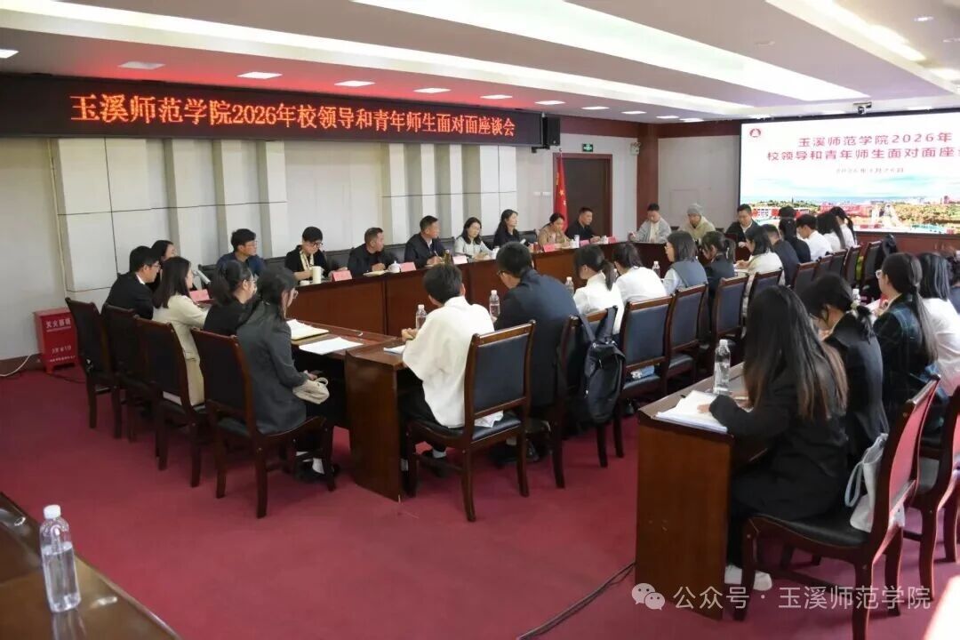 3月26日,玉溪师范学院2026年校领导与青年师生面对面座谈会在图书馆3003会议室举行。校党委书记姜家雄、副书记杨光出席会议,学校办公室、学工部、教务处、保卫处、后勤服务中心、资产经营有限公司主要负责人,校团委全体工作人员及青年师生代表40余人参加会议。会议由校团委副书记余家赛主持。